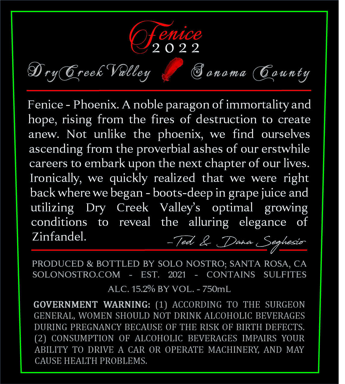 - Fenice Zinfandel - Back Label
