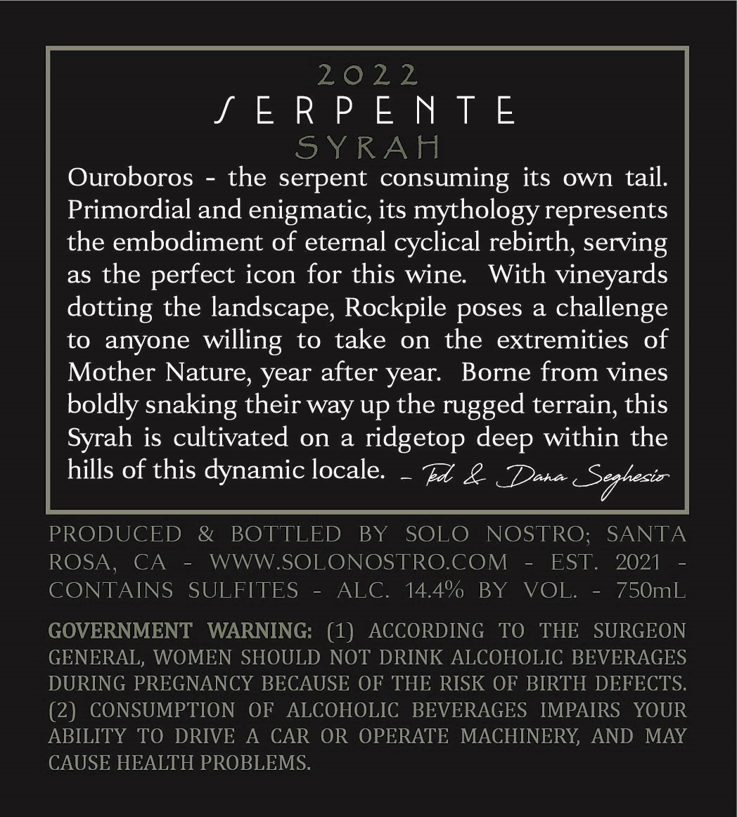 - Serpente Syrah - Back Label